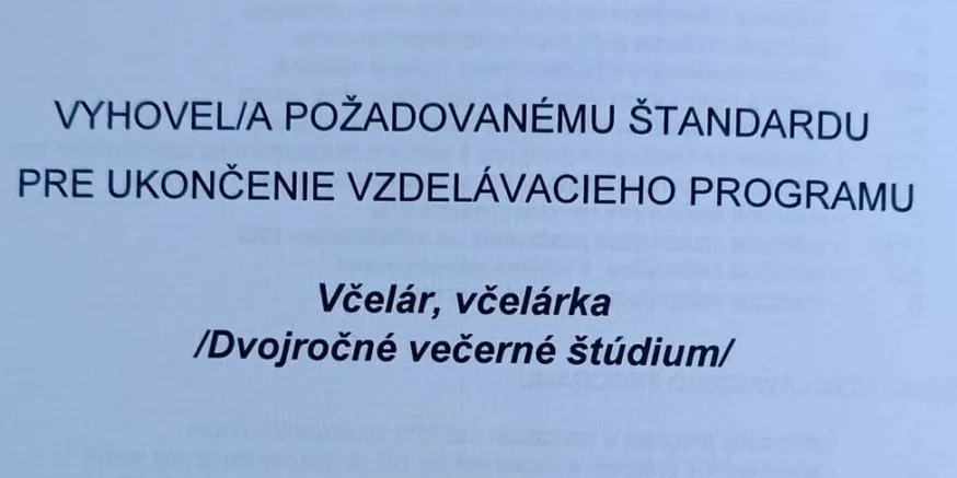 Dňa 10. 9. 2026 som ukončila dvojročné štúdium v odbore včelár / včelárka. Máme vlastnú včelnicu a med z nej používam do výrobkov. Považovala som za potrebné doplniť si najnovšie vedomosti ohľadne včelárstva, a preto som absolvovala dva roky štúdia na Strednej odbornej škole Pod Bánošom v Banskej Bystrici. Bc. Vlasta Šofárová